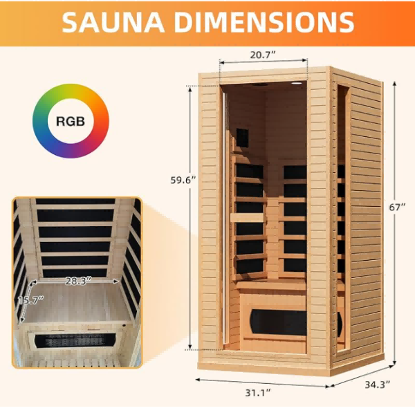 Компактното му тяло (обикновено с размери около 100 × 80 × 190 см) е подходящо за малки пространства като домове и апартаменти и е лесен за инсталиране и включване за употреба. Вътрешно оборудван с удобни пейки и дишащ дизайн на мрежата, съчетан с интелигентна система за контрол на температурата (регулируем температурен диапазон от 30-65 ℃), продължителността може да бъде зададена според нуждите (0-60 минути), балансиране на безопасността и комфорта.
