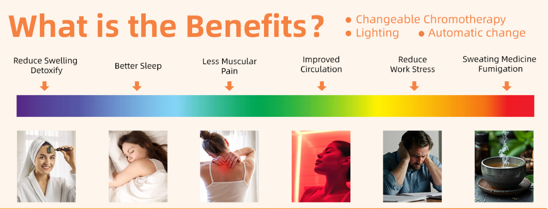 Когато се използва, далечното инфрачервено лъчение може да насърчи кръвообращението, да ускори метаболизма, да облекчи умората на мускулите и да помогне за премахване на влагата и метаболитни отпадъци от тялото, особено подходящи за заседнали хора, спортни любители и тези, които обръщат внимание на ежедневното здраве. В сравнение с традиционните сауни, той консумира по-малко енергия (с мощност от около 800-1200W), се загрява бързо (достигайки зададената температура в рамките на 10 минути) и не изисква сложни дренажни системи. Ежедневната поддръжка е проста, осигурявайки на съвременните урбанити удобно и ефективно решение за здравето на дома.