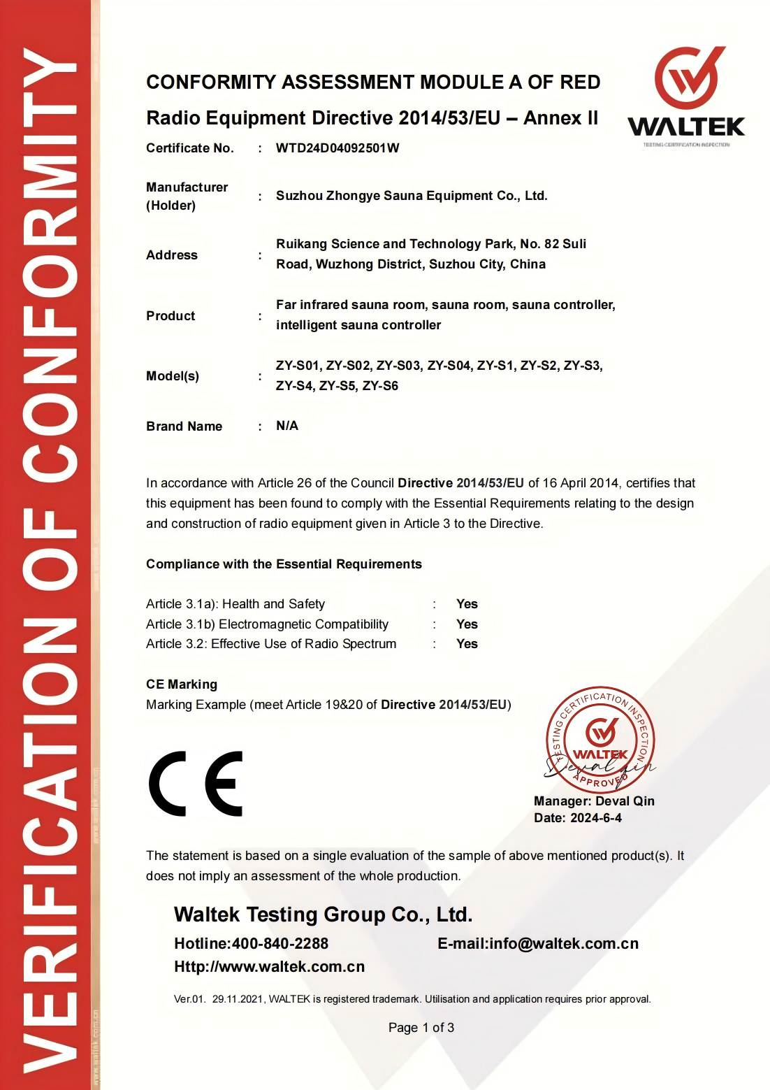 1 човек далеч инфрачервена сауна--- Квалификация на продуктите