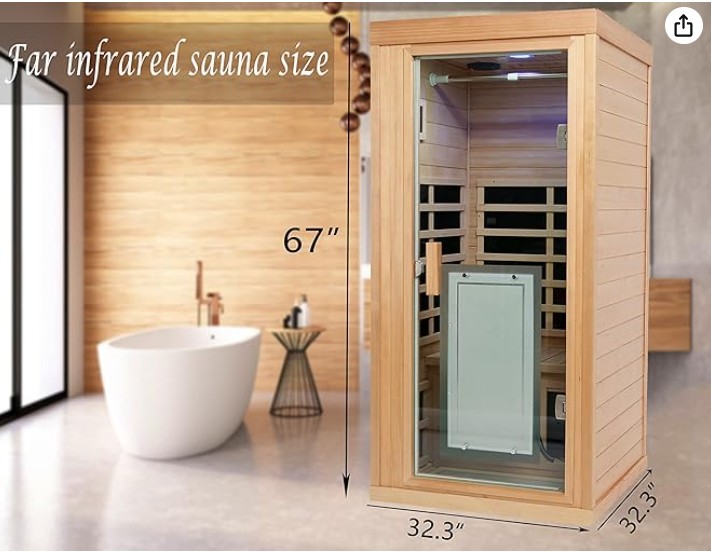 · Home Sauna: Personal home sauna size is 32.3*32.3*67 inches. Applicable height: 1.5-1.88 m/4.9-6.2 ft. Seat load: 600 lb/300 kg