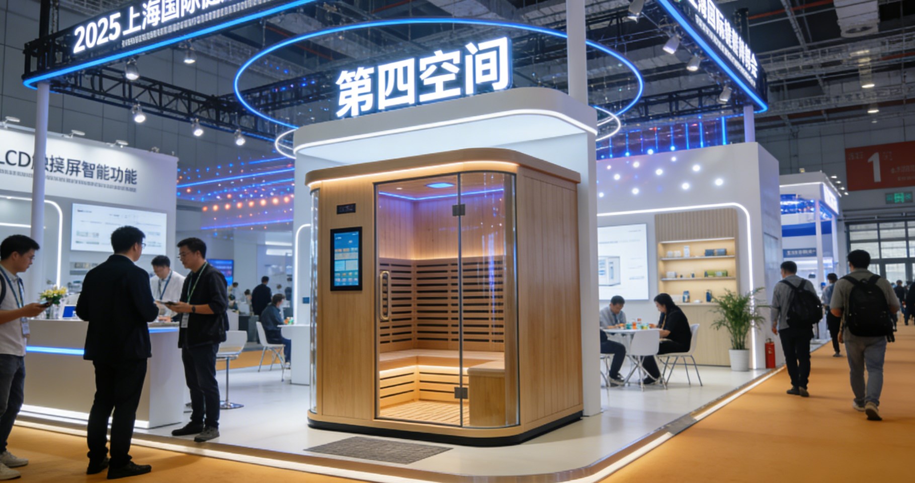 На наскоро приключилото през 2025 г. Международно изложение за здравна индустрия в Шанхай, концепцията за „Четвърто пространство“стая за саунаизложени от компании като Xuzhou Kangzhiyuan привлече вниманието. Продуктът е оборудван с LCD сензорен екран, интерфейс за предаване на живо на Tiktok и функция за гласово регулиране на температурата, която поддържа дефинирана от потребителя температурна крива и система за аромат (като освобождаване на етерично масло от лимонова трева при 60 ℃, превключване на аромата на кедър при 80 ℃) и дори може да свърже интелигентната тоалетна за наблюдение на състава на потта.