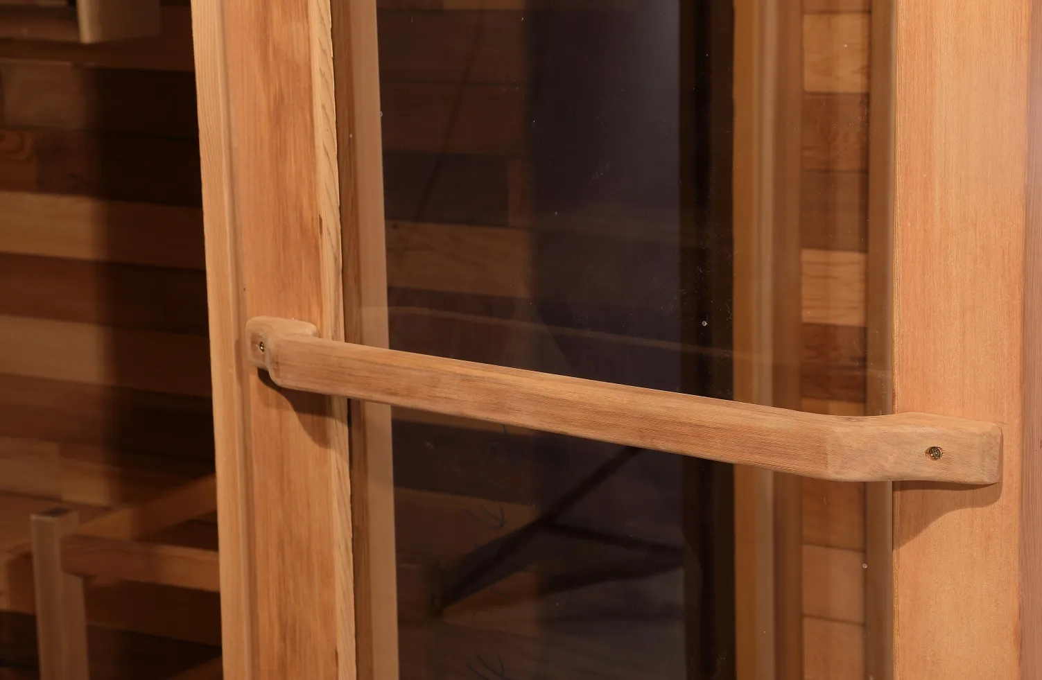 - Естетика на открито, вдъхновена от гората: Възприема цвят на естествено дърво със заоблени извити ръбове, за да се избегнат резки сблъсъци. Съчетан с врата от закалено стъкло с голяма площ, той увеличава максимално прозрачността, като същевременно предлага взривозащитена безопасност. Интегрирайки се безпроблемно с външни сцени като дворове и вътрешни дворове, той служи не само като пространство за сауна, но и като акцент във вашия външен пейзаж.