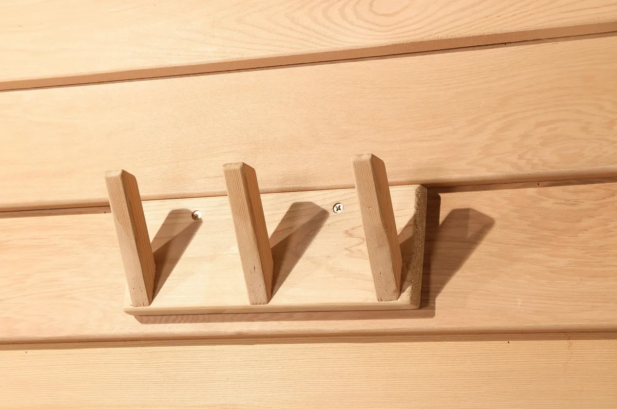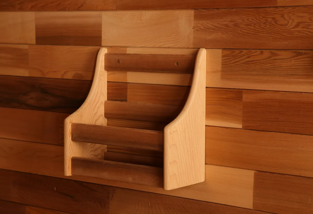 - Удобни аксесоари: Поставка за чаша, поставка за списания, вградена закачалка за дрехи (за небрежно съхранение на дрехи и кърпи, елиминиране на бъркотията по време на сауна);