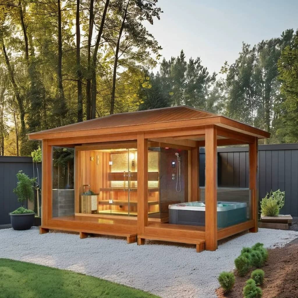 - Подходящ за външни пространства като дворове и вили, идеален за ежедневна семейна почивка и развлекателни изживявания по време на малки събирания с роднини и приятели, създавайки частна комбинирана зона за отдих "сауна + СПА".