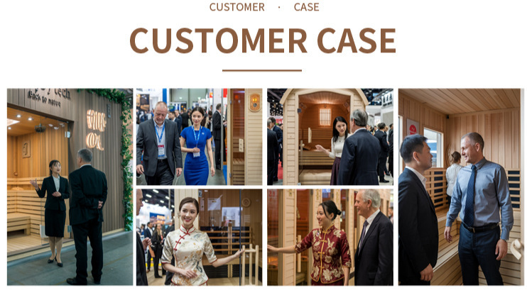 Аксесоари за наблюдение и опит: Чувствителен измервател на температурата и влажността, таймер за дънер пясък (време + ритуално усещане), ръчно полирана дървена кофа и черпак, възстановяващи традиционното усещане за сауна ритуал, като същевременно осигуряват удобно използване наВъншна стъклена врата външна парна баня.